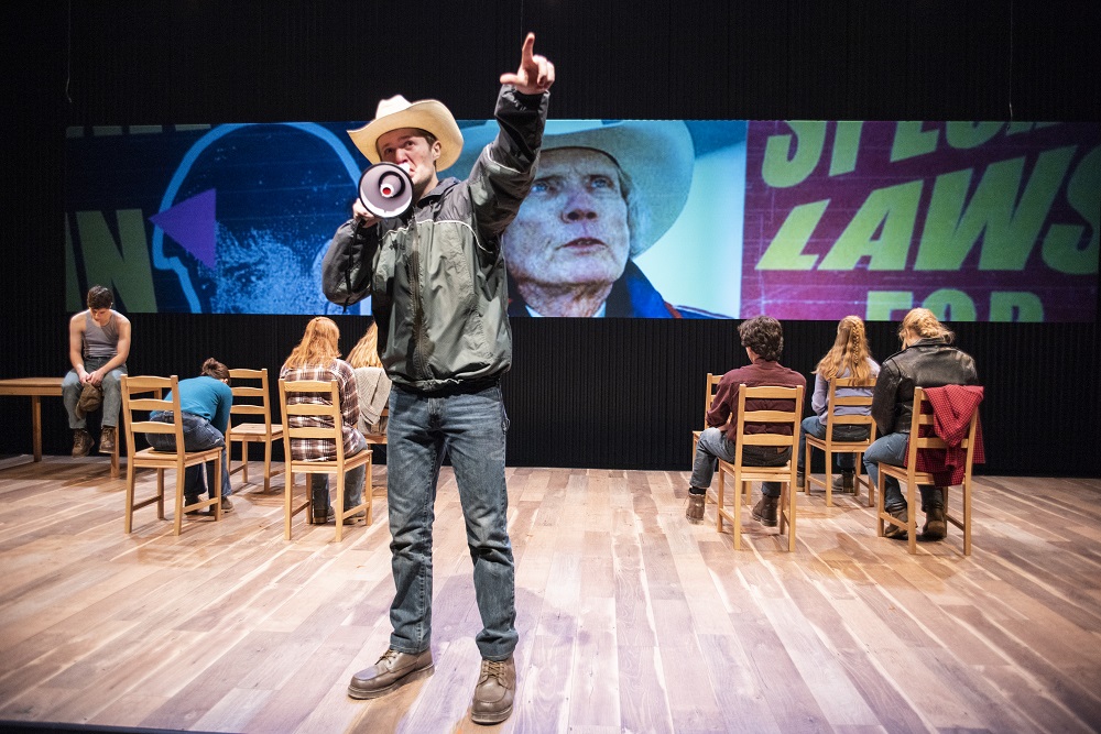 [The playwright has created] a matrix in which ten capable actors excel, indeed, often shine. Along with brief choral passages, there are duets and monologues, long scenes and short ones, big moments and small, quiet times… Brown’s well-crafted use of different dramatic tools provides ample material for the actors to bring to their characterizations…. Max Johnson’s Dean must be bitterly cruel.” – Broadway World