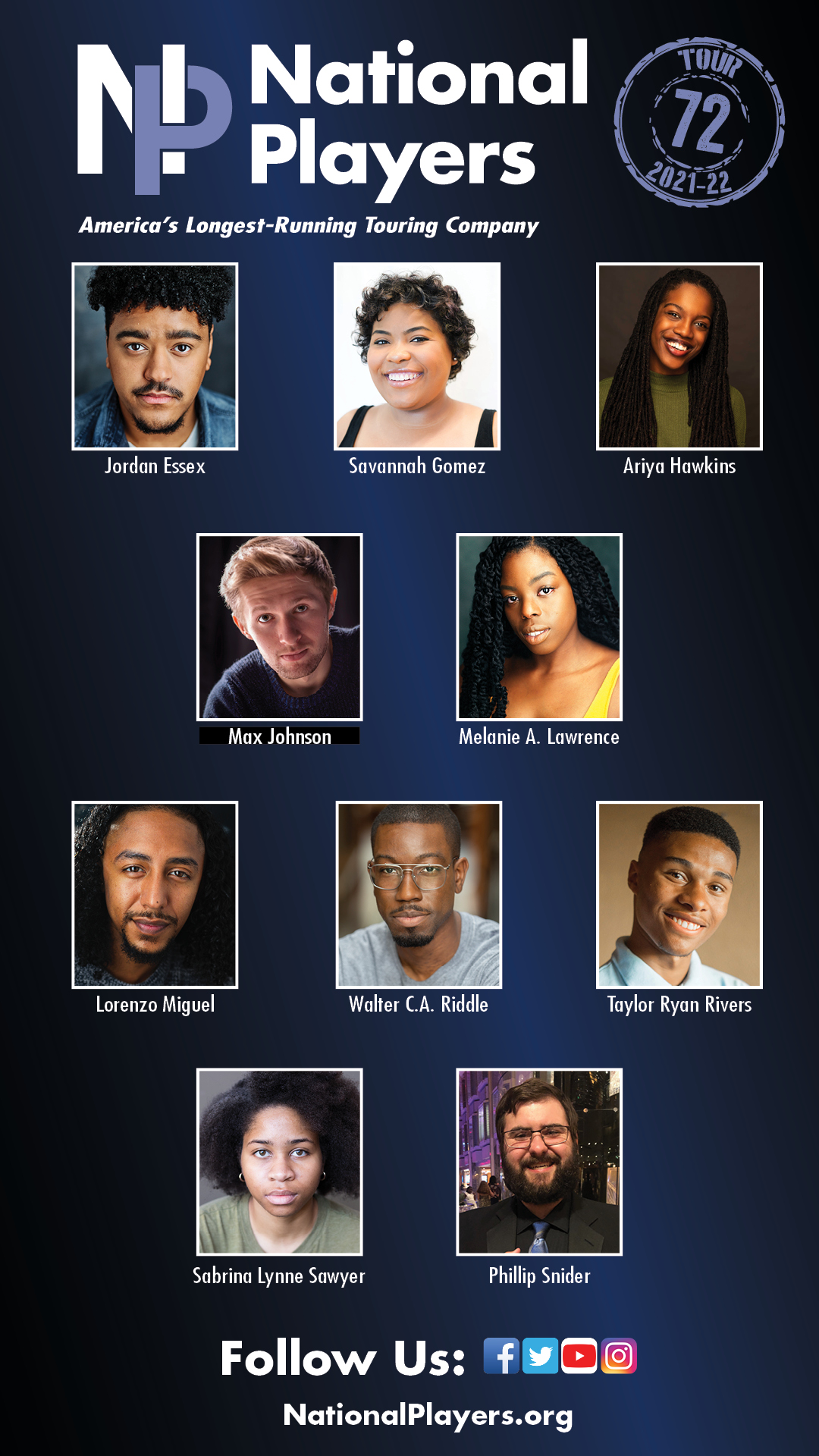 Olney Theatre describes the National Players as “a unique ensemble bringing innovative theater to communities large and small across the United States. Founded in 1949, National Players stimulates youthful imagination and critical thinking by presenting classic plays in invigorating ways for modern audiences. National Players is the hallmark outreach program of Olney Theatre Center, a Helen Hayes Award-winning theatre in suburban Washington, DC. “