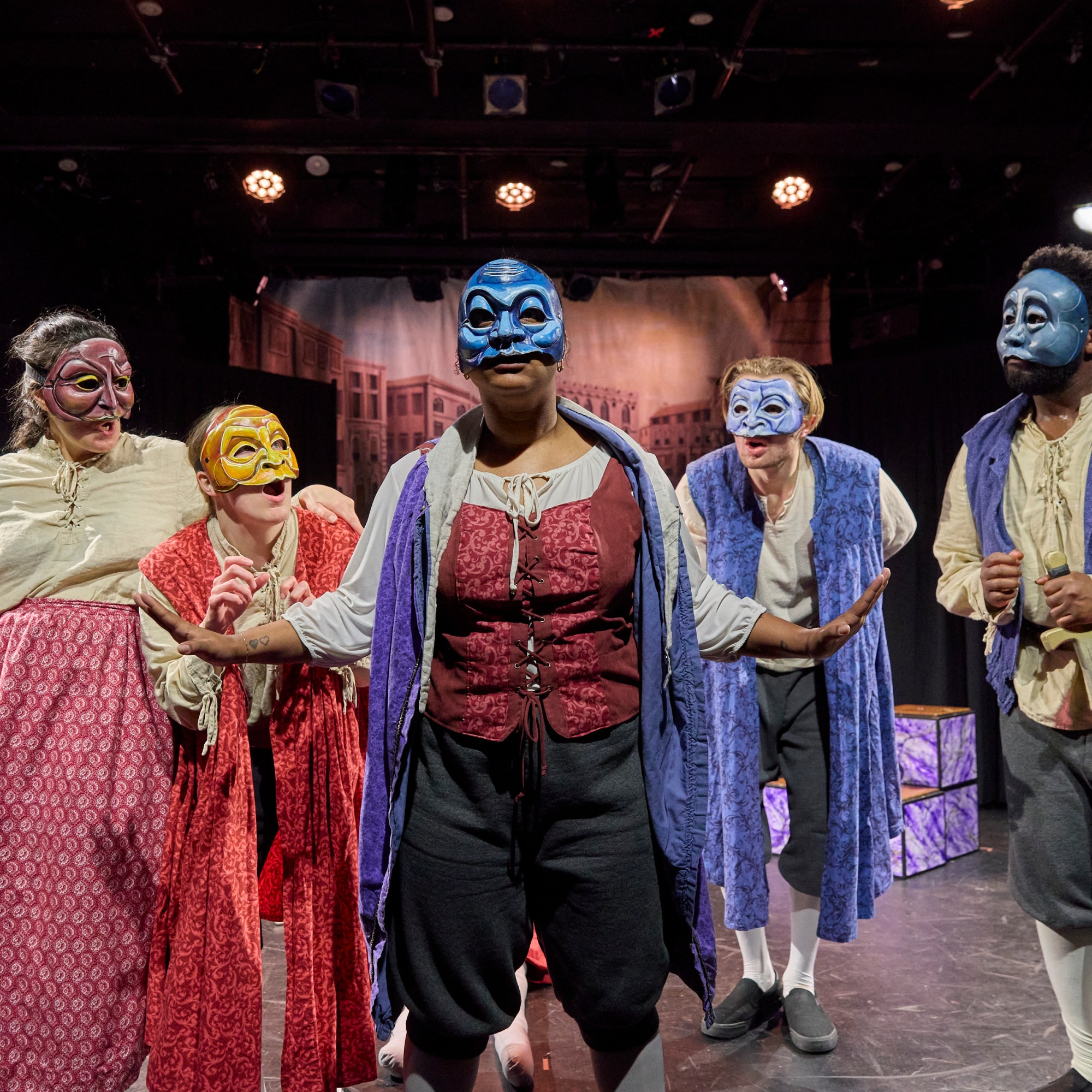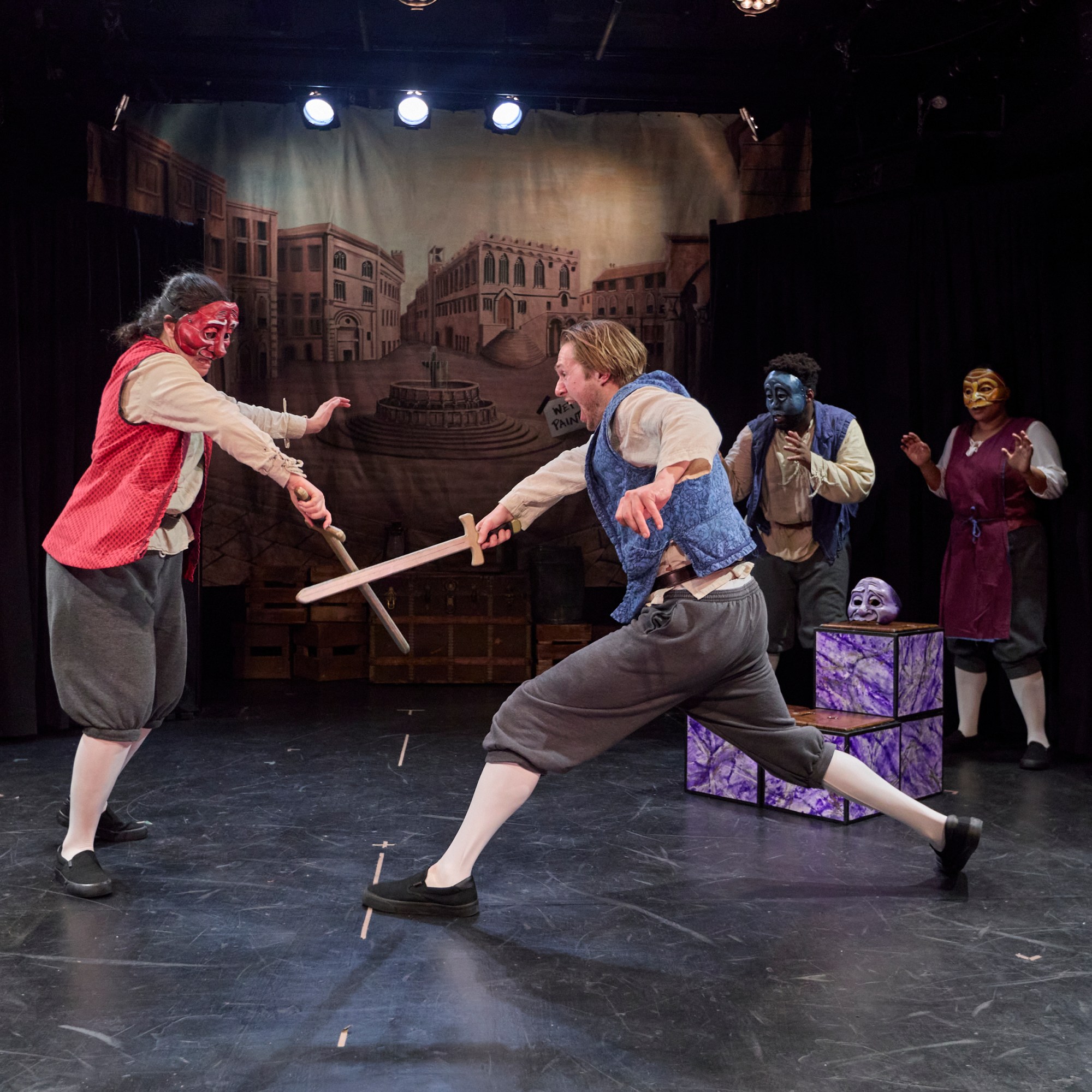 I’ve wanted to work with Faction of Fools for a while, and this was a great project to work with them on! Faction of Fools describes their goal as “to entertain, educate, and experiment through the practice and performance of Commedia dell’Arte.” Throughout the process of rehearsing Romeo and Juliet, I learned a tremendous amount about how to integrate Commedia into a modern performance, as well as how to combine my knowledge of physical acting with the form of Commedia. See reviews below: